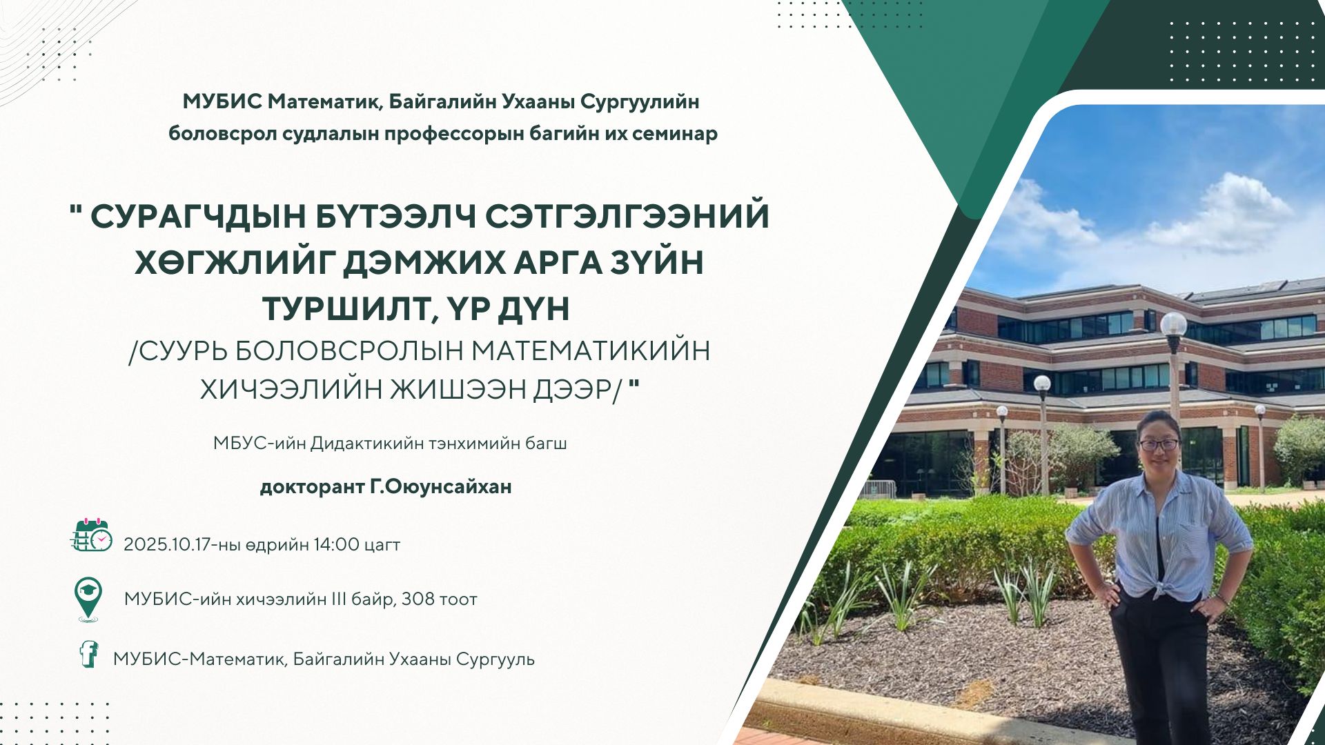 Хаана: МУБИС-ийн их сургуулийн хичээлийн 3-р байрны 308 тоотод